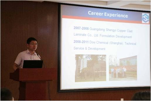 Figure 1. Dr. Lin Zheng organized the seminar. Dr. Lin Zheng organized the seminar and shared their interesting photos in their school life in detail. Dr. Yu Bin did an academic report about single-crystal Ag nanocrystals with exposed (100) and (111) facets in direct propylene epoxidation reaction. Mr. Junjie Wan introduced his work experience and some work inspiration in the past ten years. Mr. Hao Meng gave some tips on the self-improving program after graduation. Mr. Bingyan Liu shared several difficulties and challenges encountered in his work using some cases in practical industrial projects. Ms. Qian Sun provided a vivid and meaningful report on her dream and how to become a leading technician in a new working environment. Ms. Yuting Jiang also introduced some work tips in an international company. Their reports drew warm applause in the meeting room.